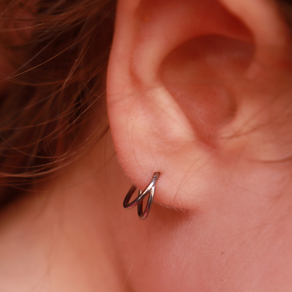 Diseñada para quienes dominan los detalles. Esta argolla doble crea la ilusión de dos piezas en una sola perforación, aportando un estilo pulido, equilibrado y moderno sin esfuerzo.