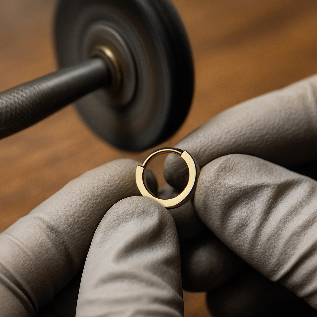 Nuestras joyas están hechas con materiales 100% biocompatibles, hipoalergénicos y libres de plomo o níquel. Cada pieza es pulida a modo espejo con doble pulido, tanto con máquina como por manos expertas de artesanos españoles, garantizando un acabado brillante, suave y seguro para tu piel.