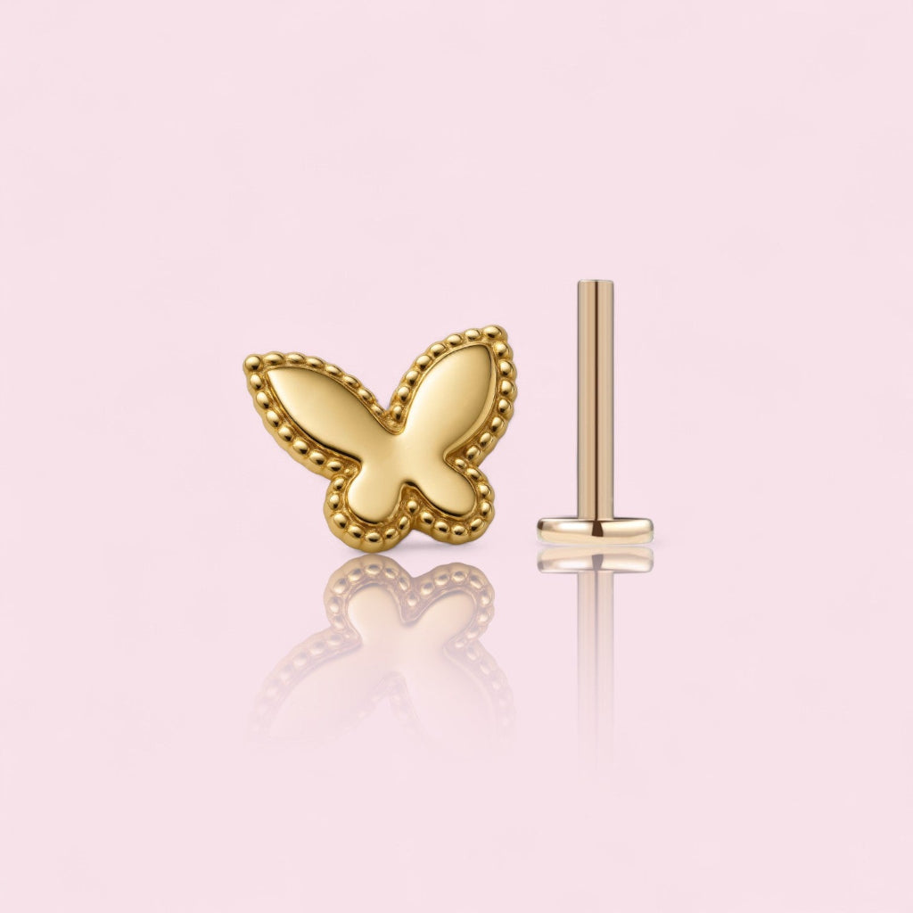 Que tu estilo vuele alto con las alas de Auréa, esta hermosa mariposa esta confeccionada en oro sólido de 14Kt sin plomo, níquel o metales pesados. Su calidad resalta en su hermoso pulido a mano.