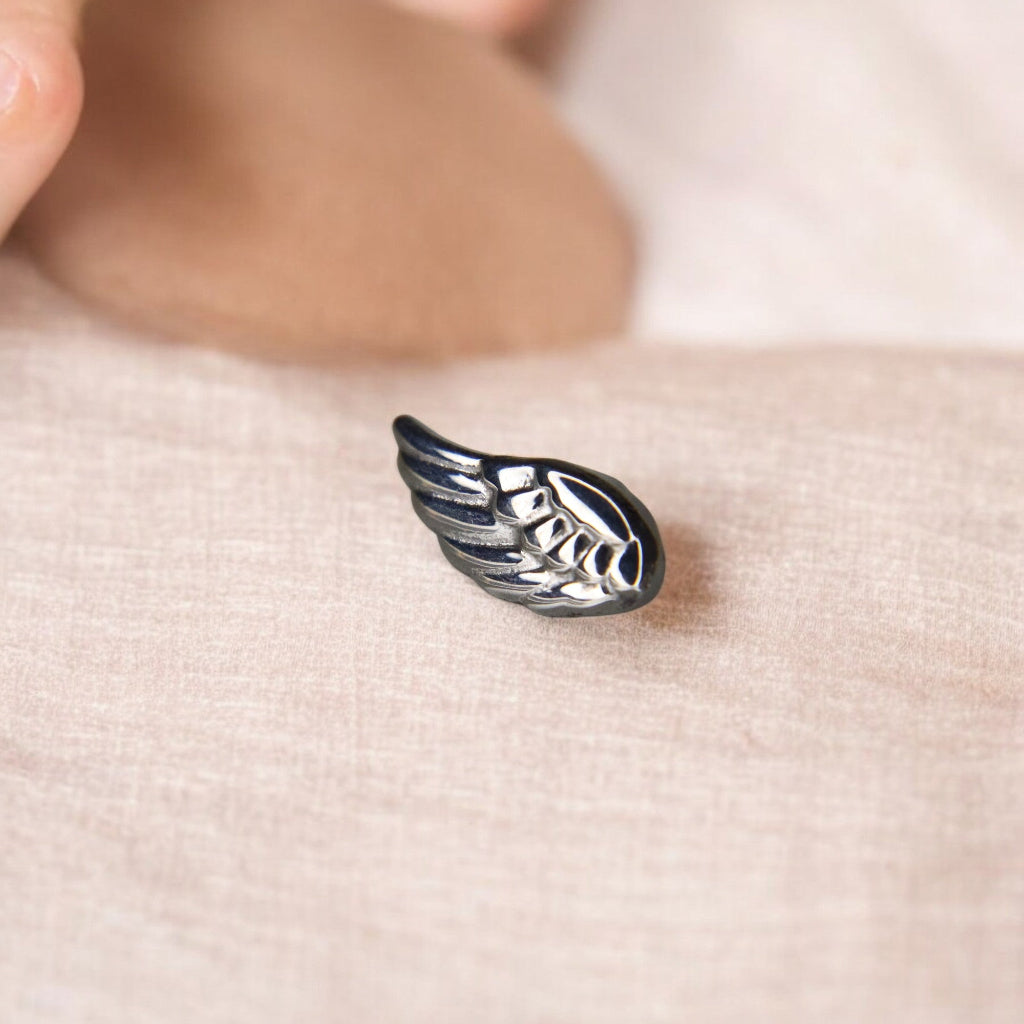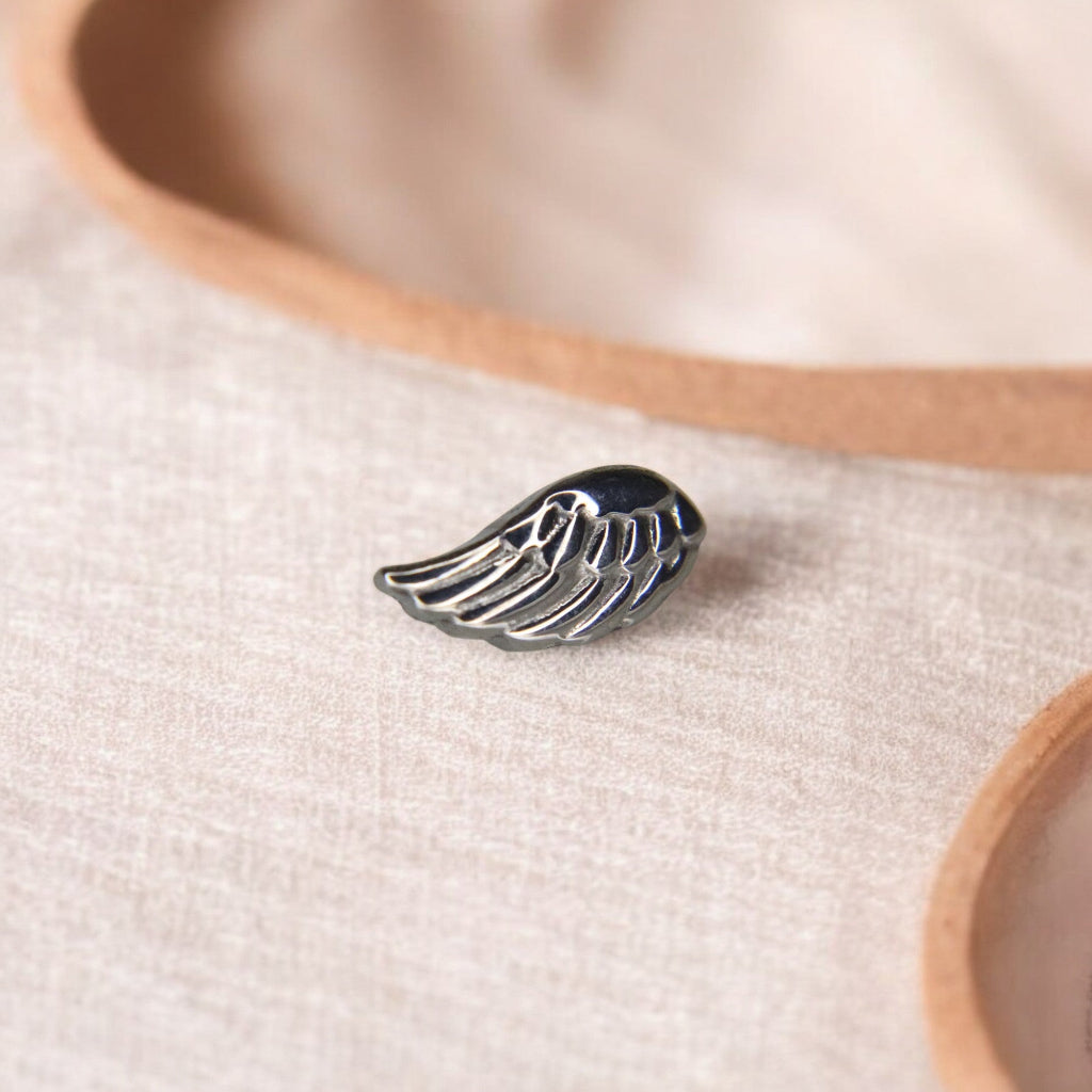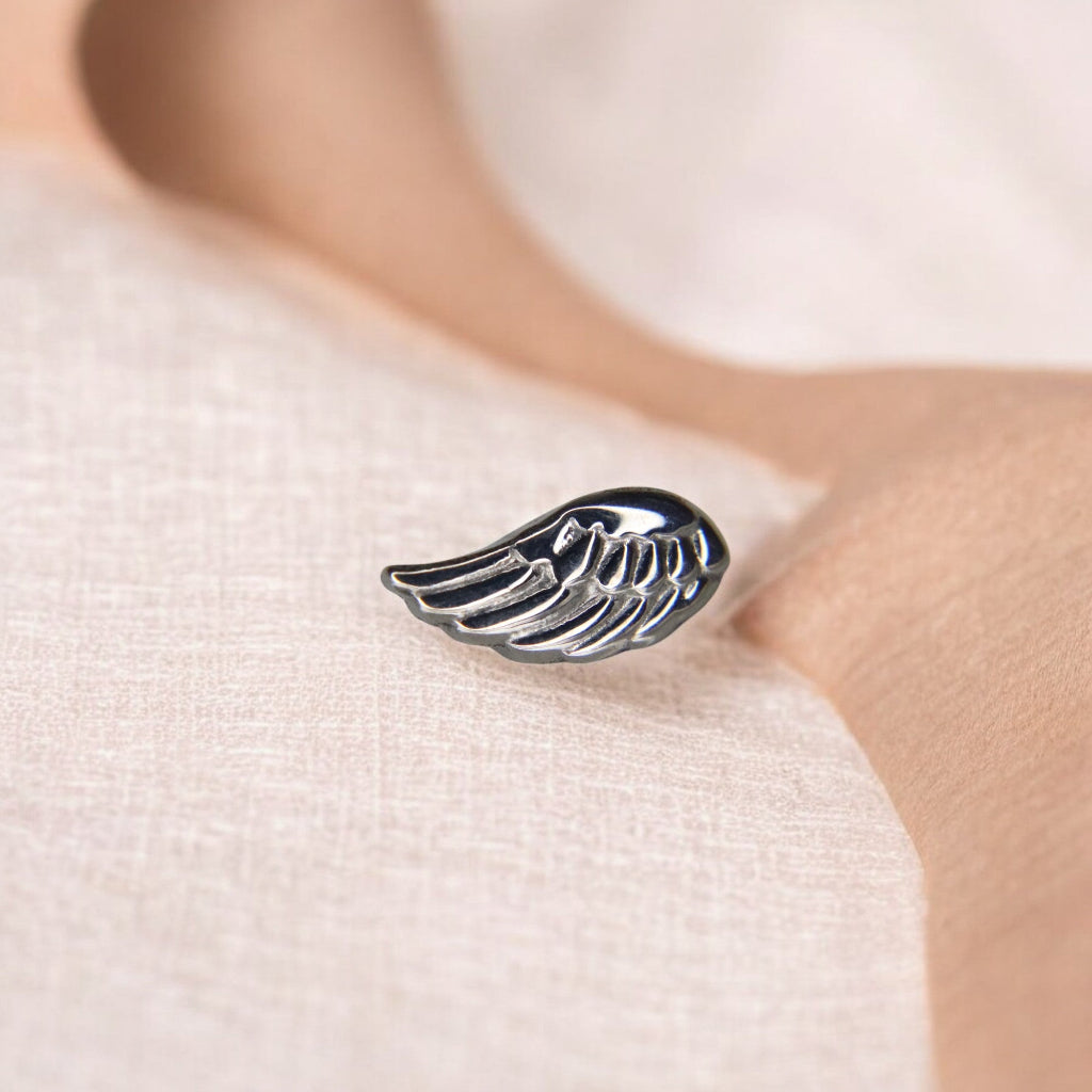Para espíritus que no siguen caminos, los crean. Este labret con diseño de ala estilizada captura la esencia del vuelo y la transformación personal.