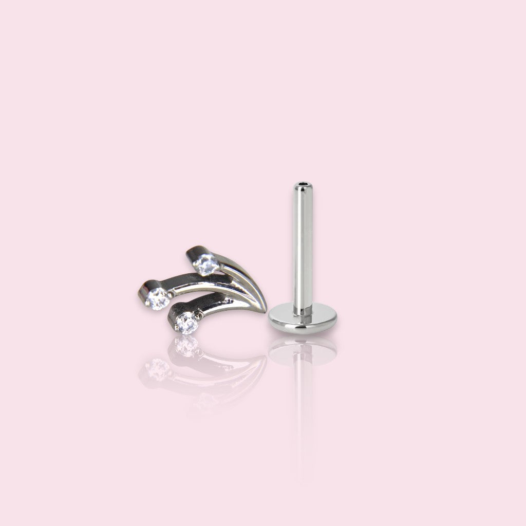 Este labret presenta un top con tres circonias cúbicas AAA alineadas en forma de estrella fugaz, evocando movimiento, deseo y elegancia.