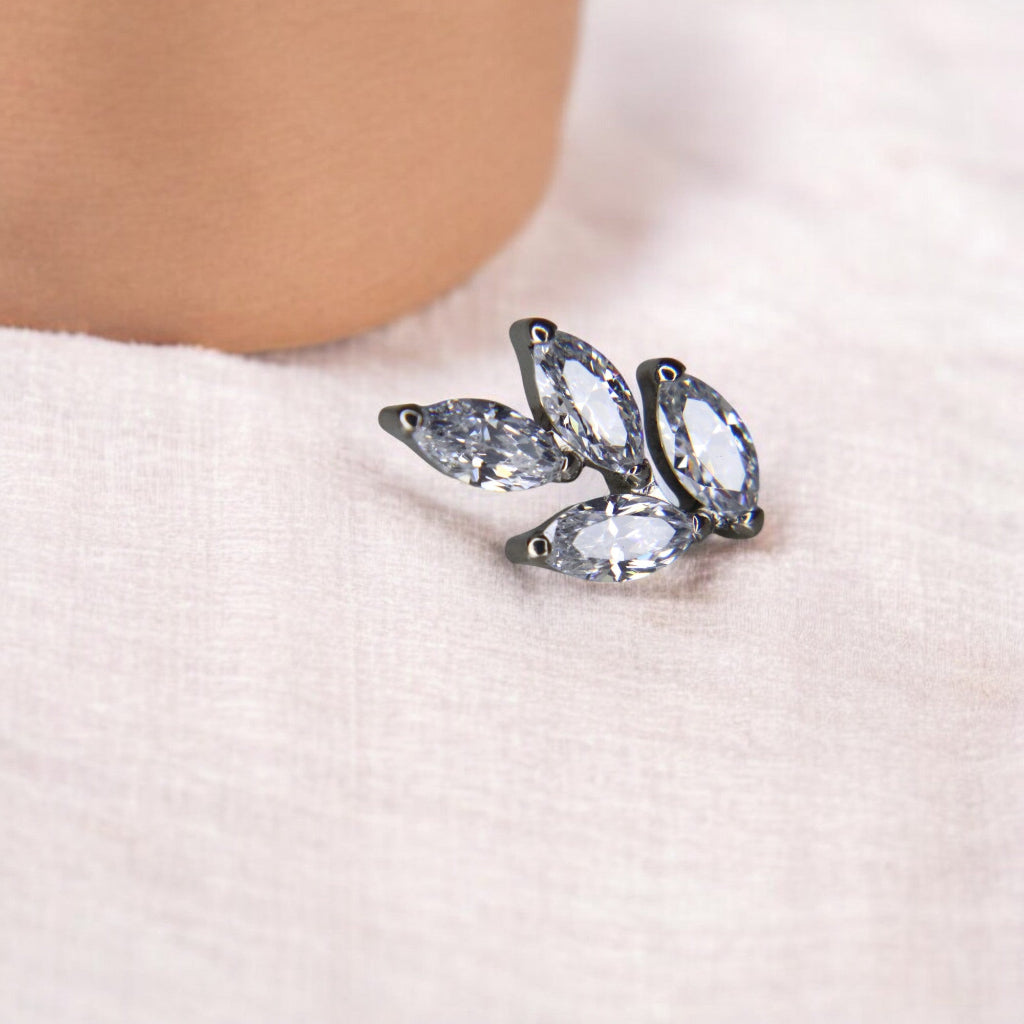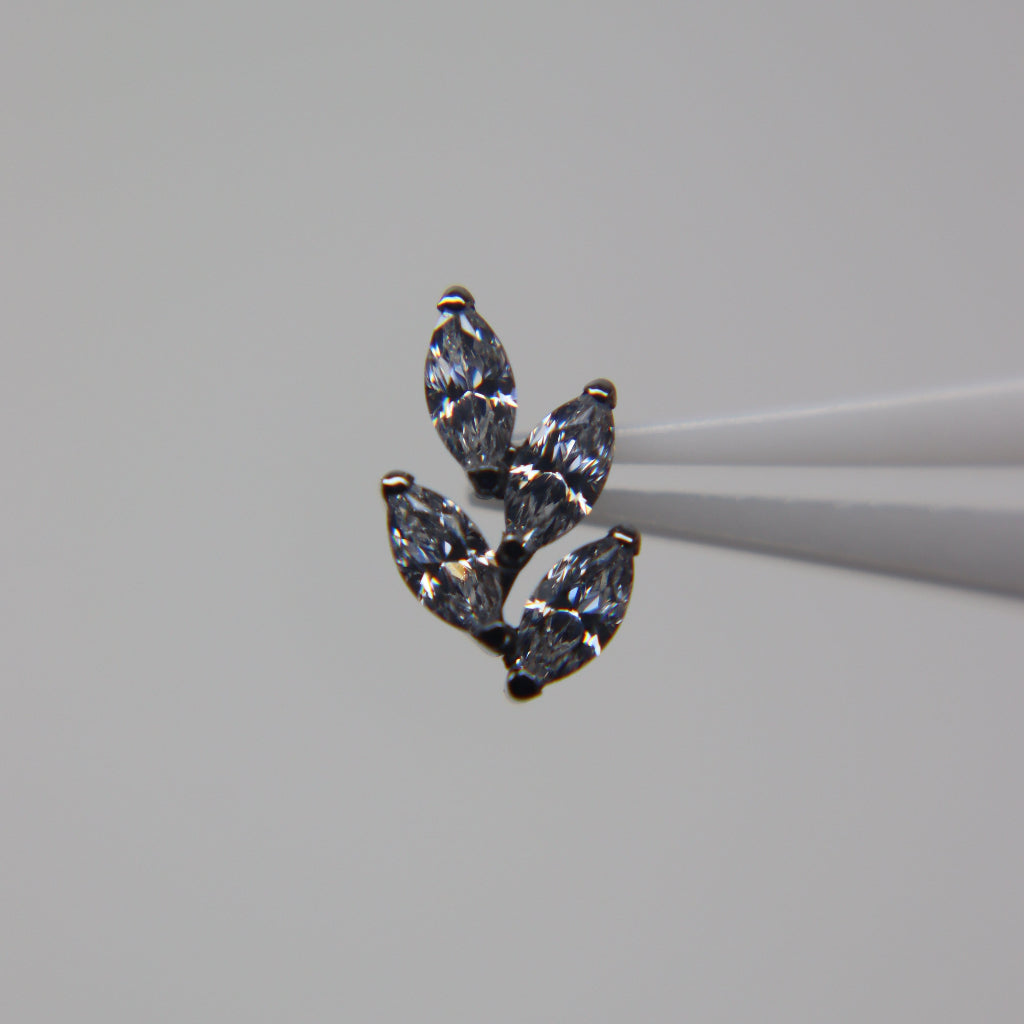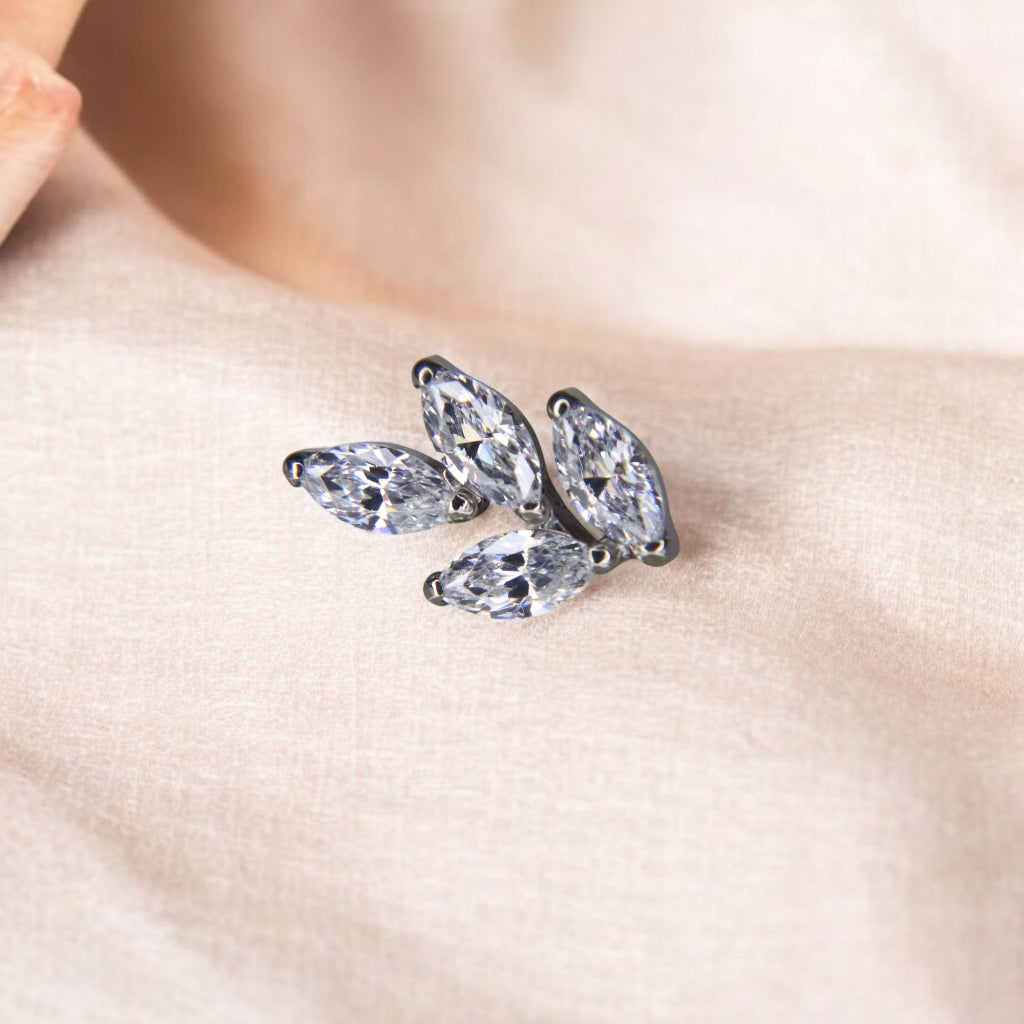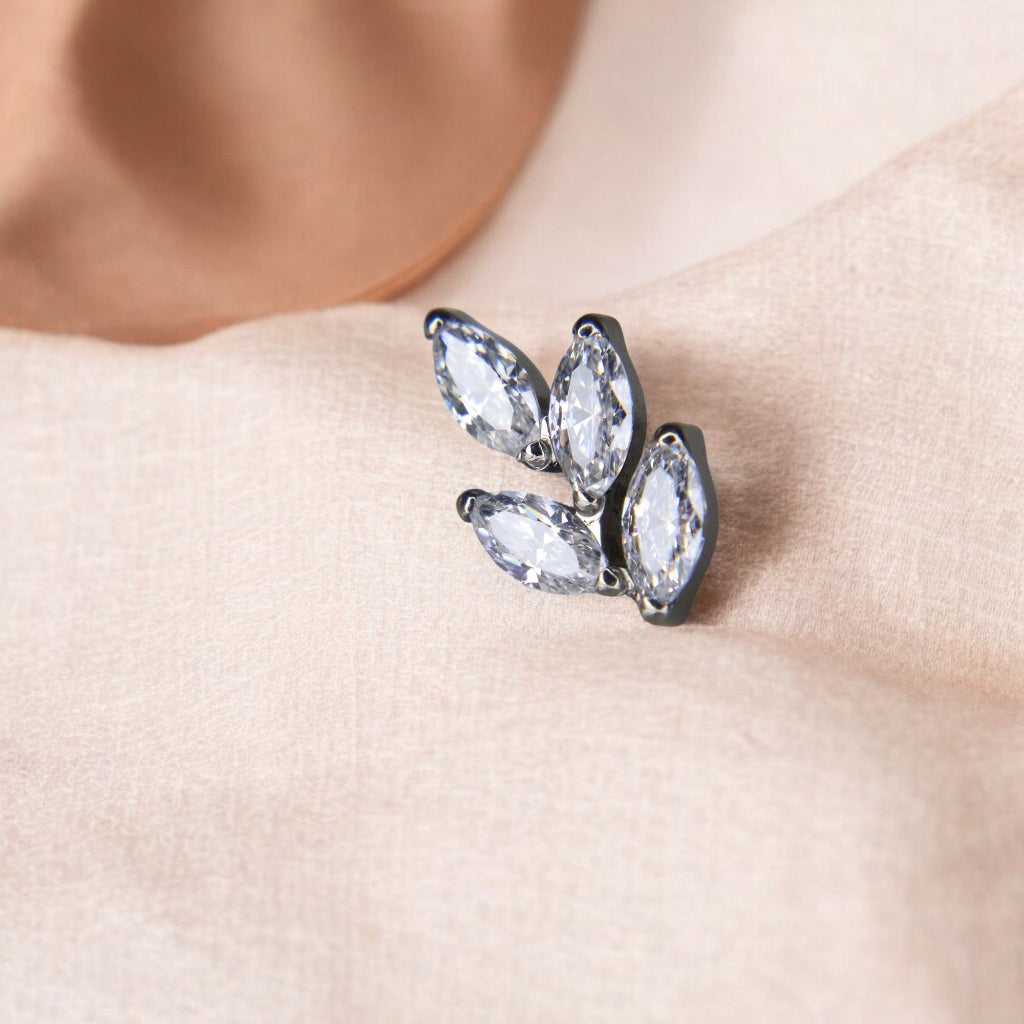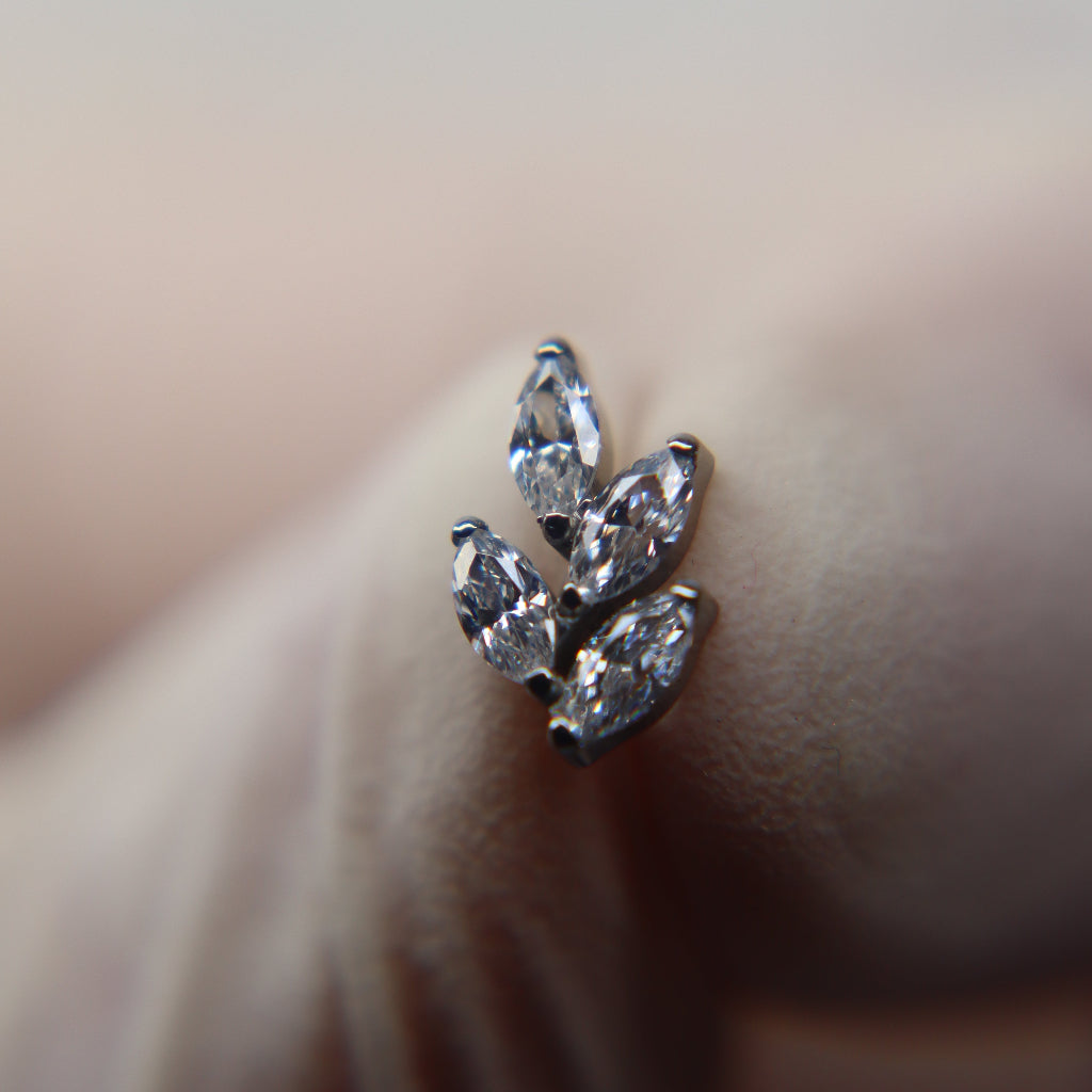 Sutil y armonioso, este labret celebra la elegancia de la naturaleza con un top formado por 4 marquesinas de circonia cúbica (CZ) dispuestas como delicadas hojas.