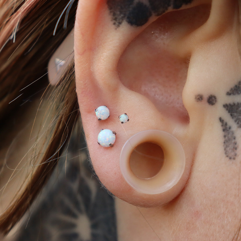 16G para labret, postes o argollas y 14G para barras de pezón o ombligo.