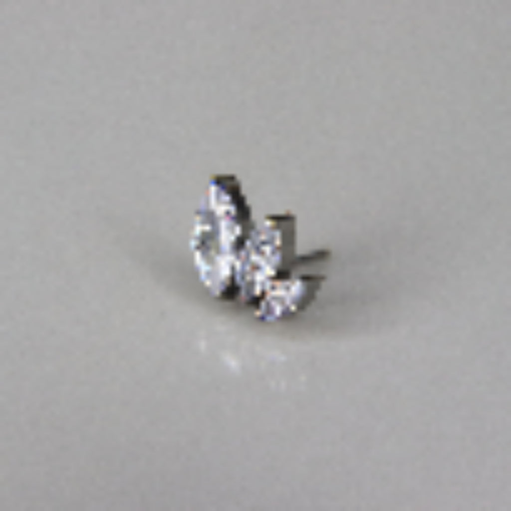 Minimalismo con intención en este labret que presenta un top con tres marquesinas de circonia cúbica (CZ) en tamaño descendente, creando una forma delicada y armoniosa.