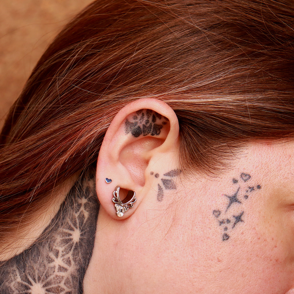 Le han hecho los que van arriba de las perforaciones de nacimiento a mi hija de 9 años, que increíble la mano de esta chica me encanta como han quedado y las estrellitas se le ven genial...