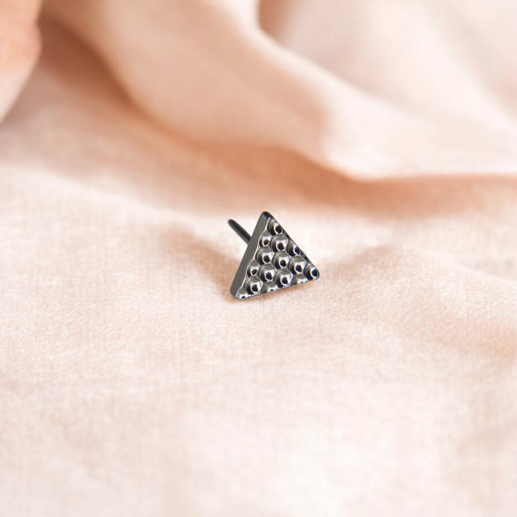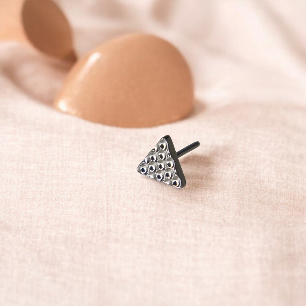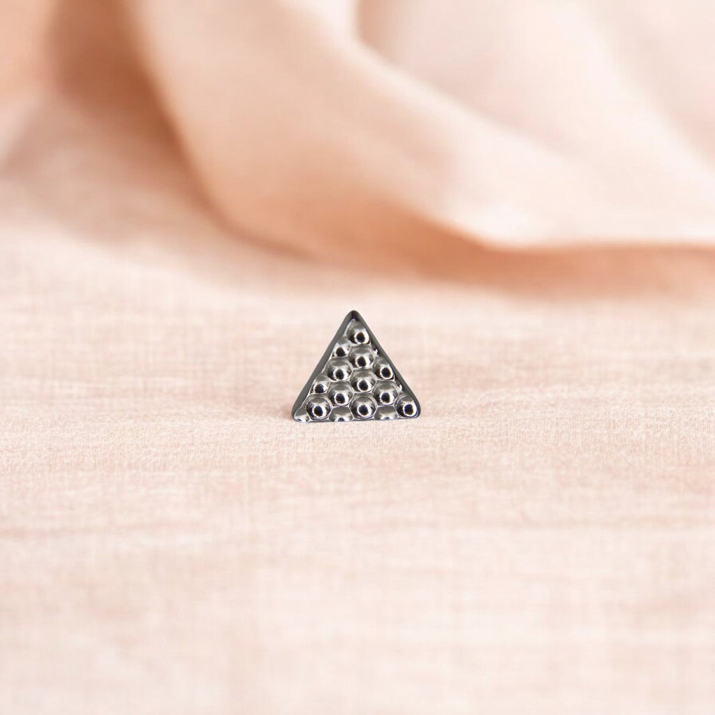 Un triángulo con corte circular que rompe la rigidez con sutileza. Este diseño combina fuerza, dirección y equilibrio, ideal para quienes llevan una estética moderna con significado.