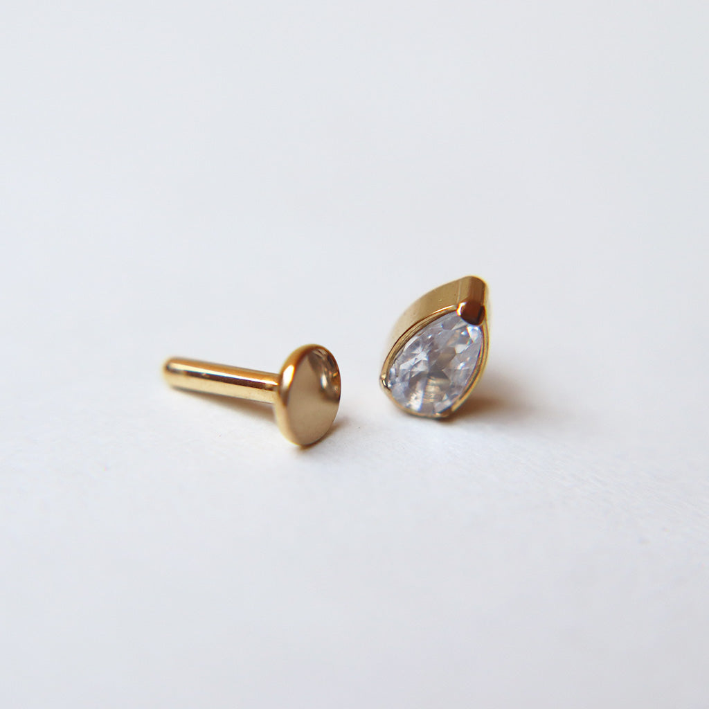 Imagina una pequeña gota de oro que descansa junto a tu piel, su superficie lisa capturando la luz como el primer rocío del alba. En su corazón, una circonia cúbica AAAAAA talla lágrima desborda un brillo intenso, reflejando mil destellos con cada movimiento. Pulida a mano y bañada en oro, lleva contigo ese instante de magia y pureza: un tesoro sencillo que evoca la delicadeza del agua y la grandeza de tu propio resplandor.