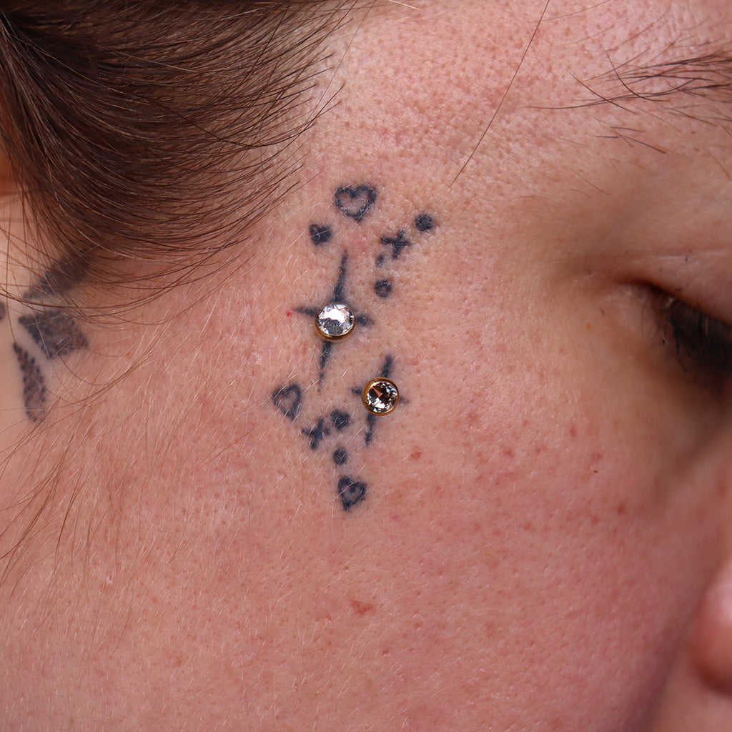 Trabajado de manera impecable luciendo un cristal Swarovski® perfecto para microdermales en rostro, pecho o cadera.