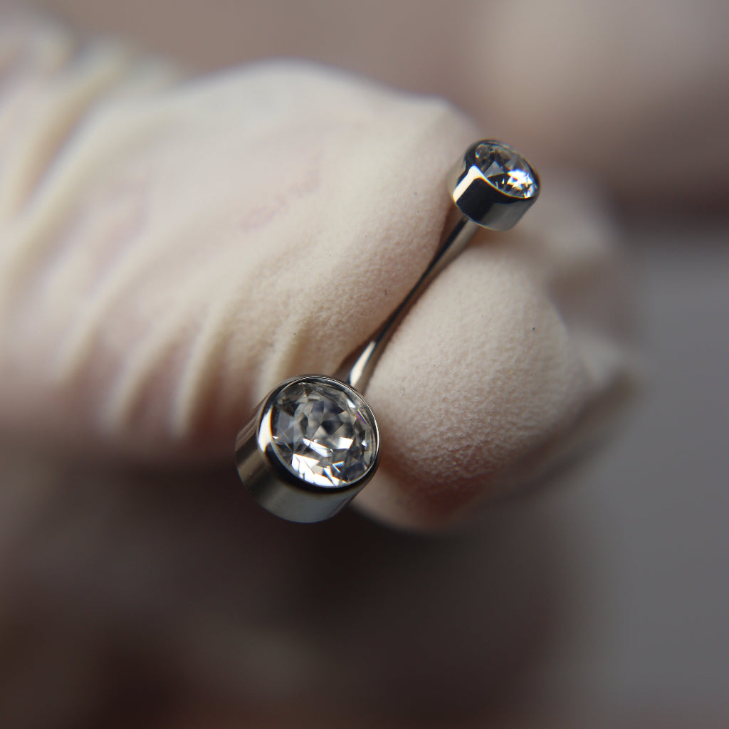 Este navel incorpora cristales Swarovski® que capturan la luz con una intensidad única, elevando tu estilo con un destello elegante y sofisticado.