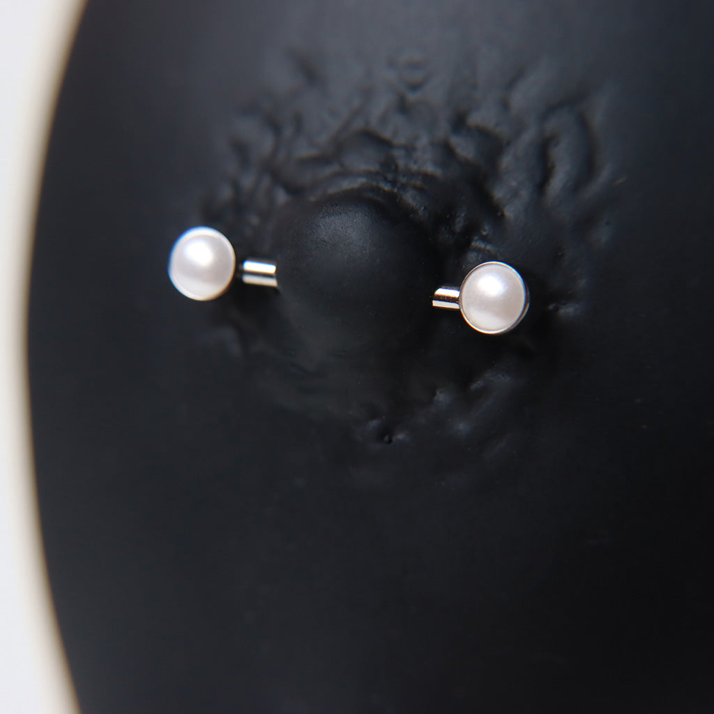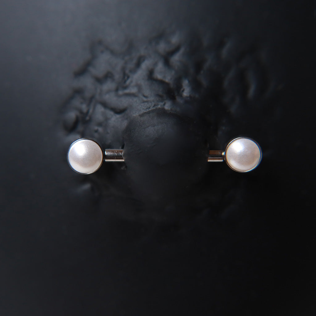 El par de barbells PERLA para pezón presenta un diseño elegante y natural, con tops redondos adornados con perlas extraídas con delicadeza. La combinación de materiales de alta calidad crea una pieza que resalta con sutileza.