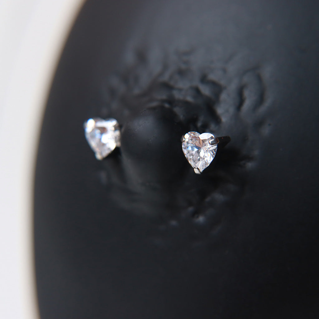 El par de barbells CORAZÓN para pezón estan diseñadas para quienes buscan belleza y ternura. Sus tops en forma de corazón, engastados con circonias cúbicas, emiten un brillo deslumbrante.