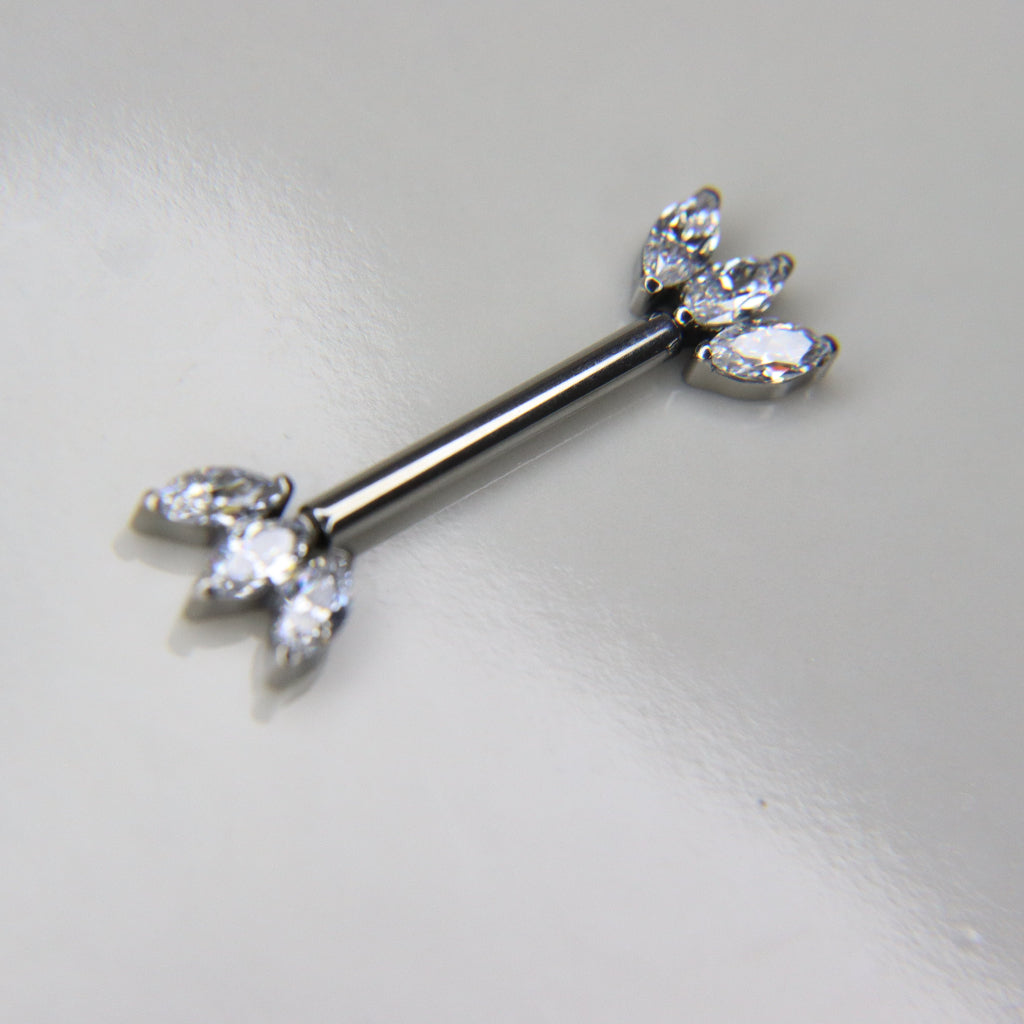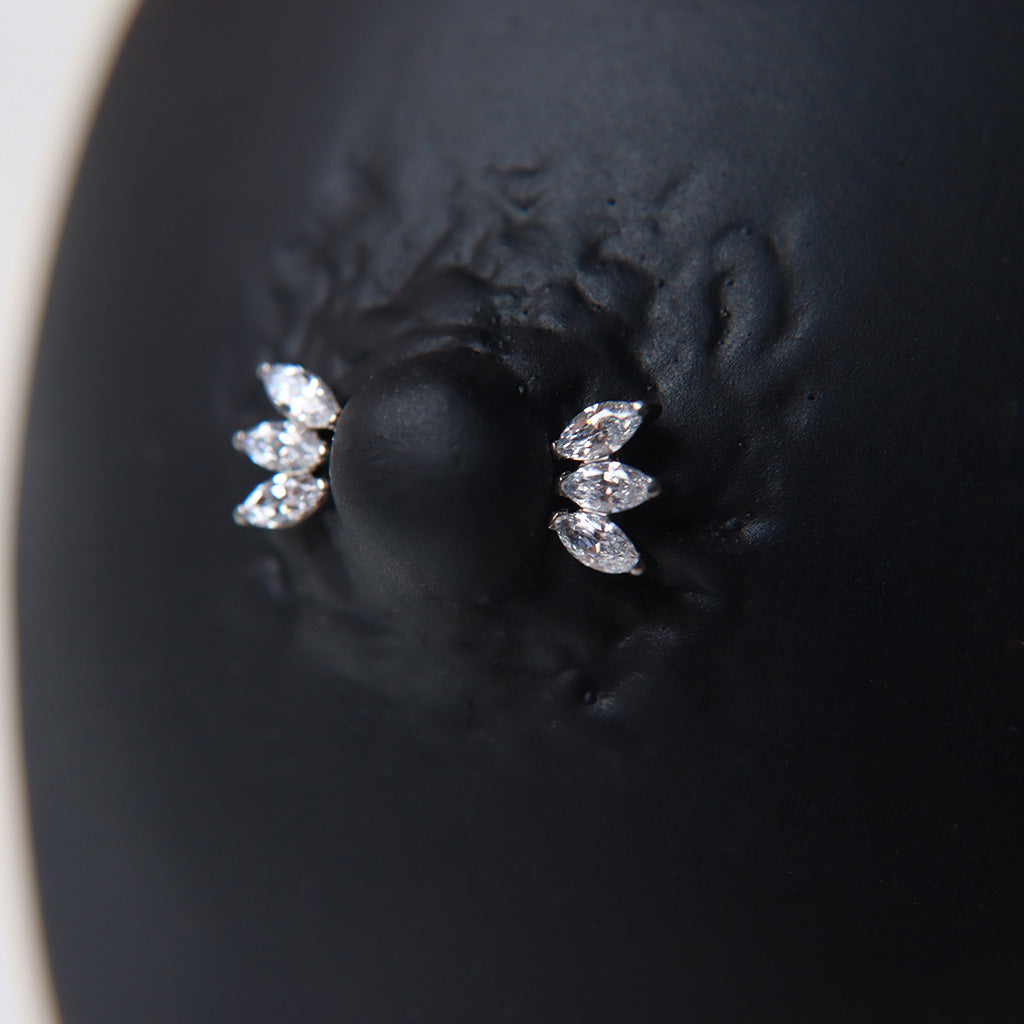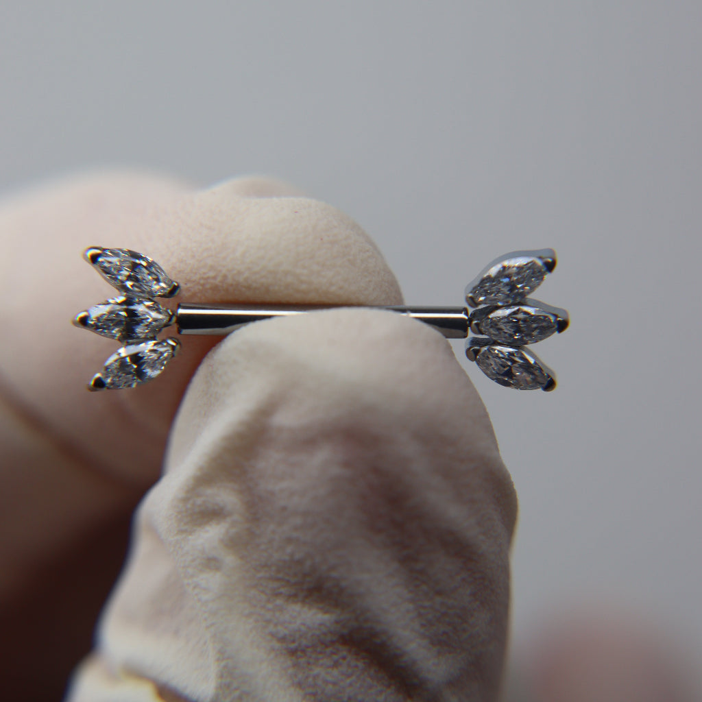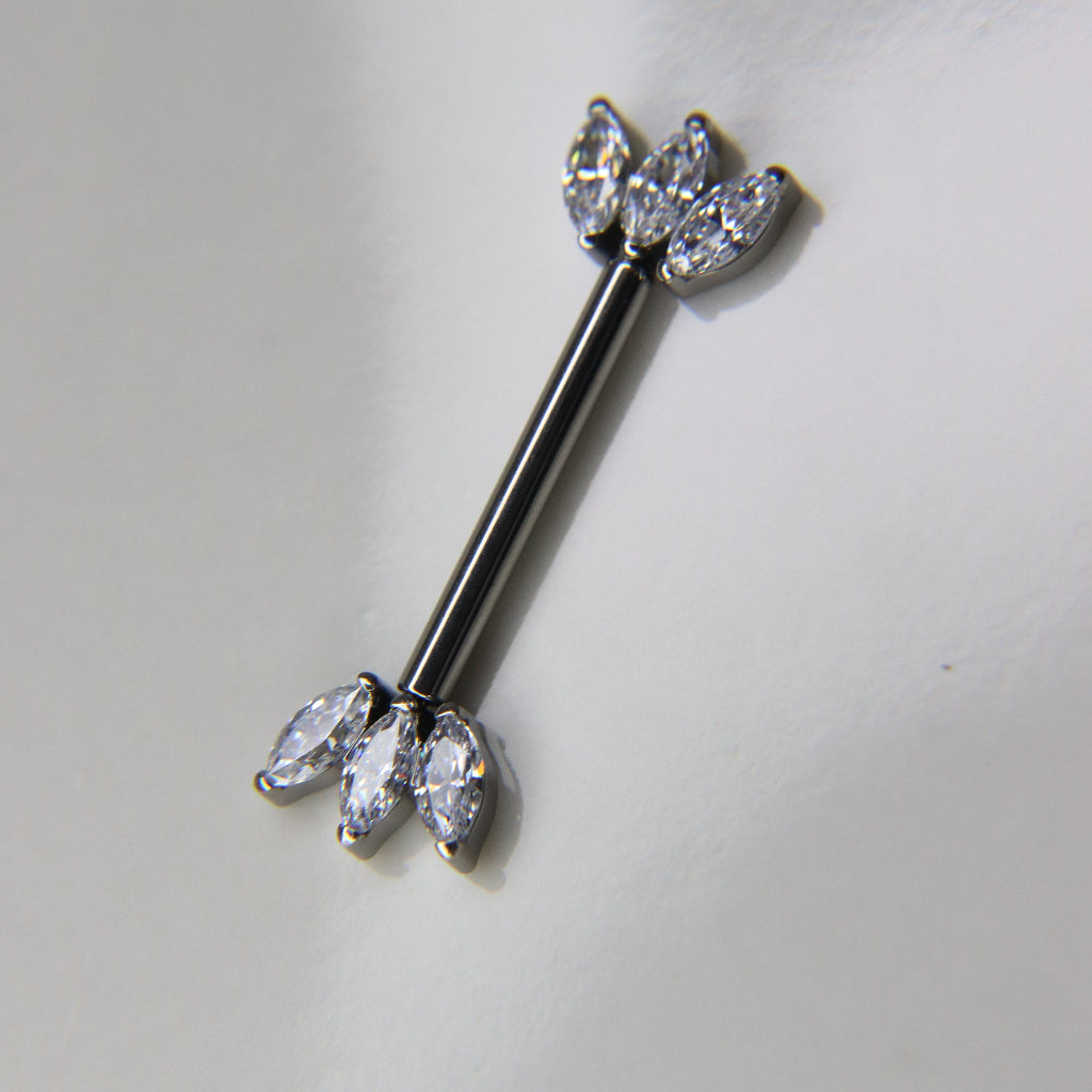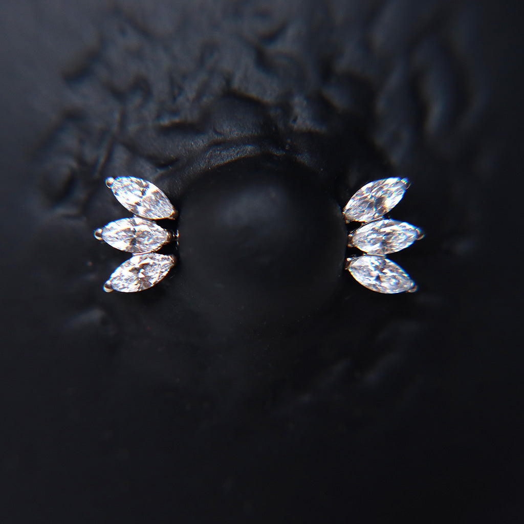 El par de barbells TRIADA redefine el lujo con su top adornado por una triple marquesina de circonias cúbicas que aportan un brillo excepcional. Su diseño geométrico y sofisticado ofrece un toque moderno y dinámico, ideal para quienes buscan destacar con cada detalle.